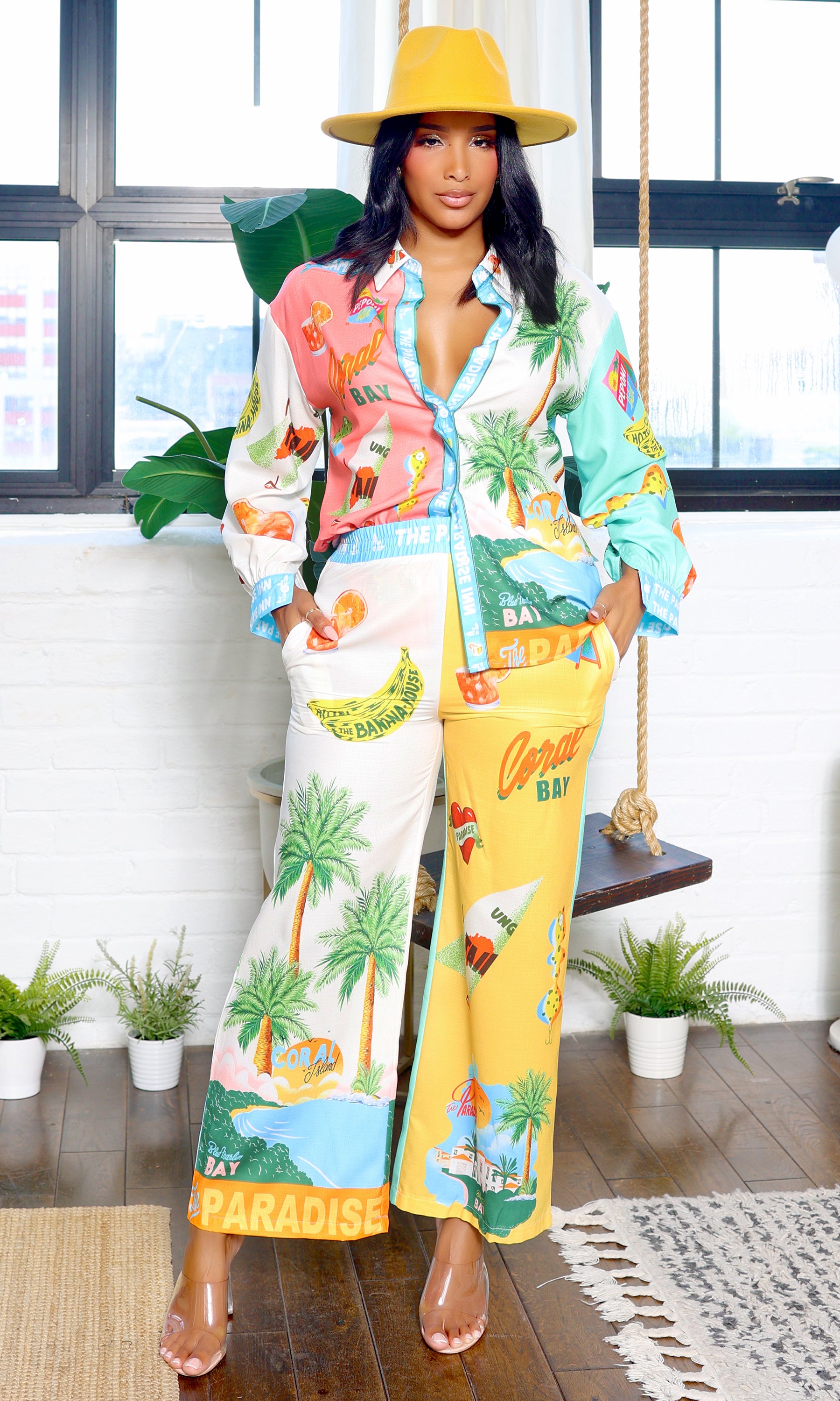 Elevate your style with the Mia Tropical Satin Women's Pant Set. Crafted from silky satin adorned with a vibrant tropical print, this ensemble brings a touch of exotic flair to any occasion. Perfect for lounging or evenings out, it blends elegance with relaxed sophistication for effortless summer chic.