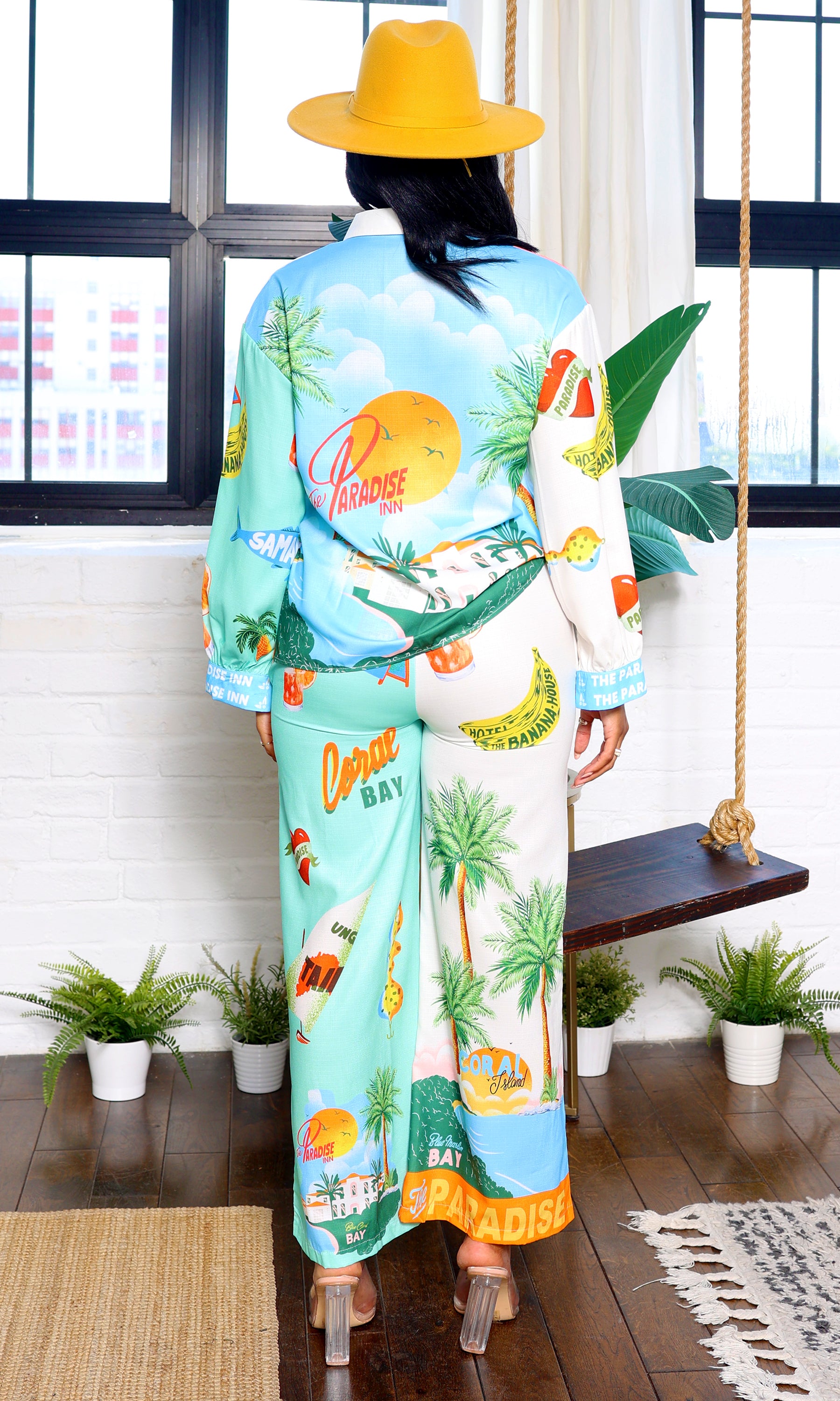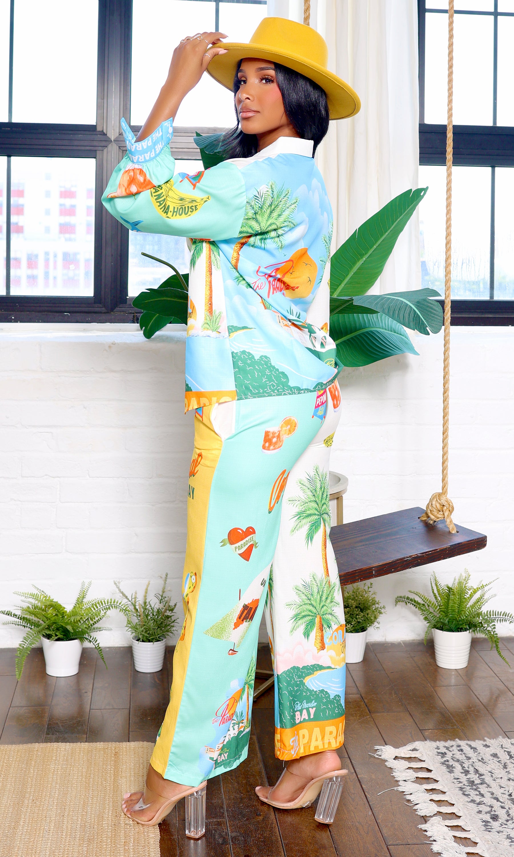 Mia | Tropical Satin Women's Pant Set