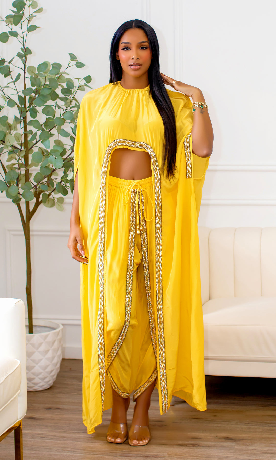 Hera | Hand Beaded Cape Pants Set - Yellow - Cutely Covered