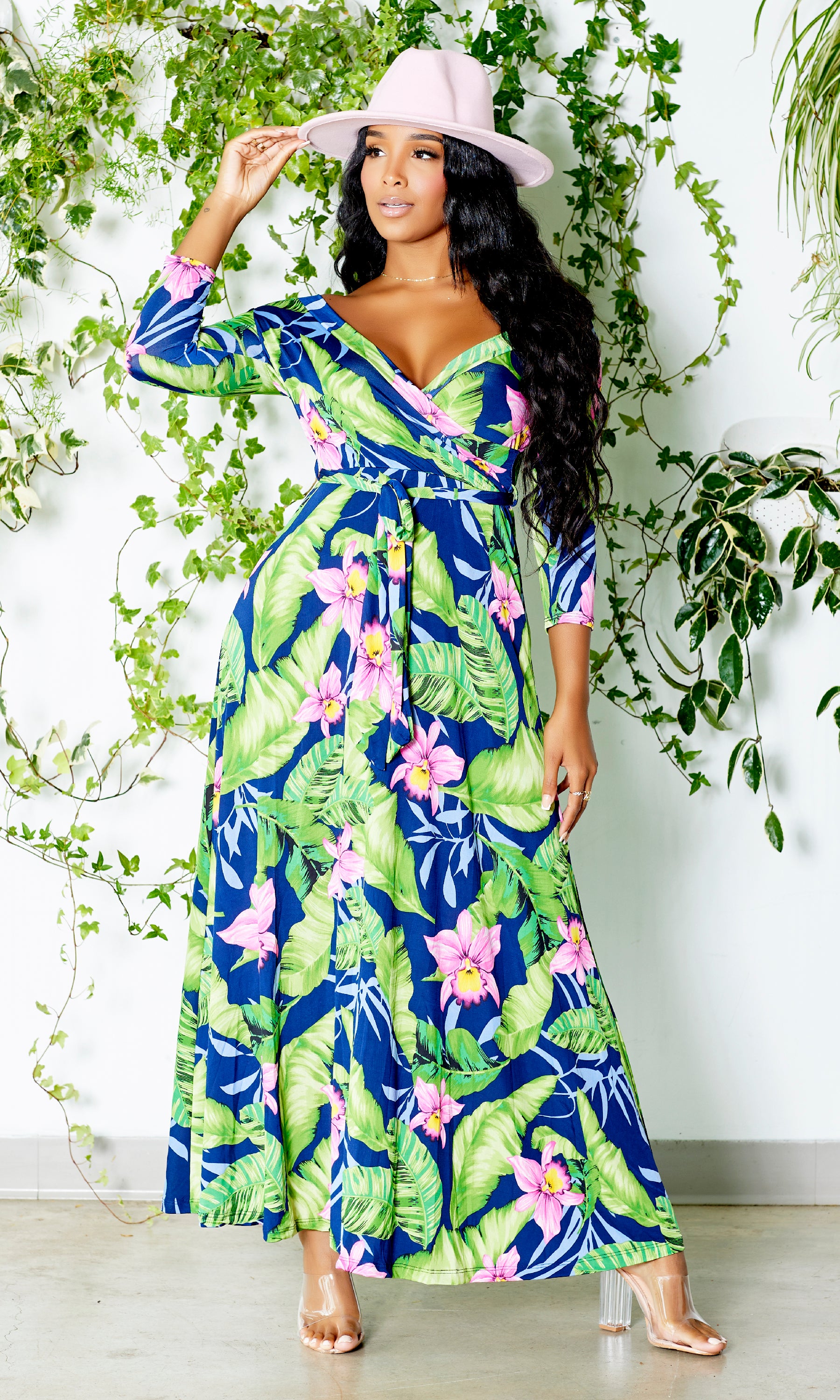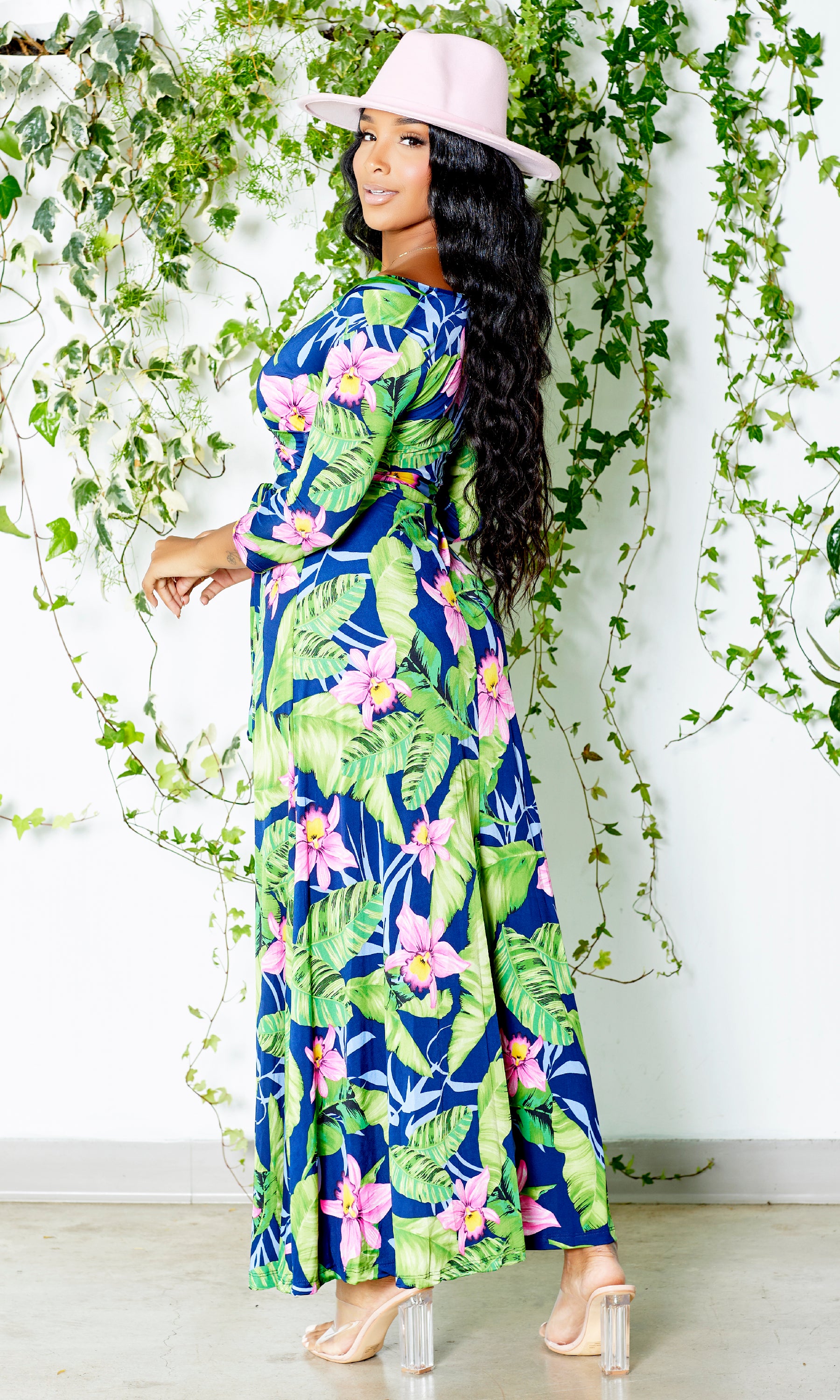 Blessed and Beautiful l Stretch Maxi Dress - Pink Lily Palm